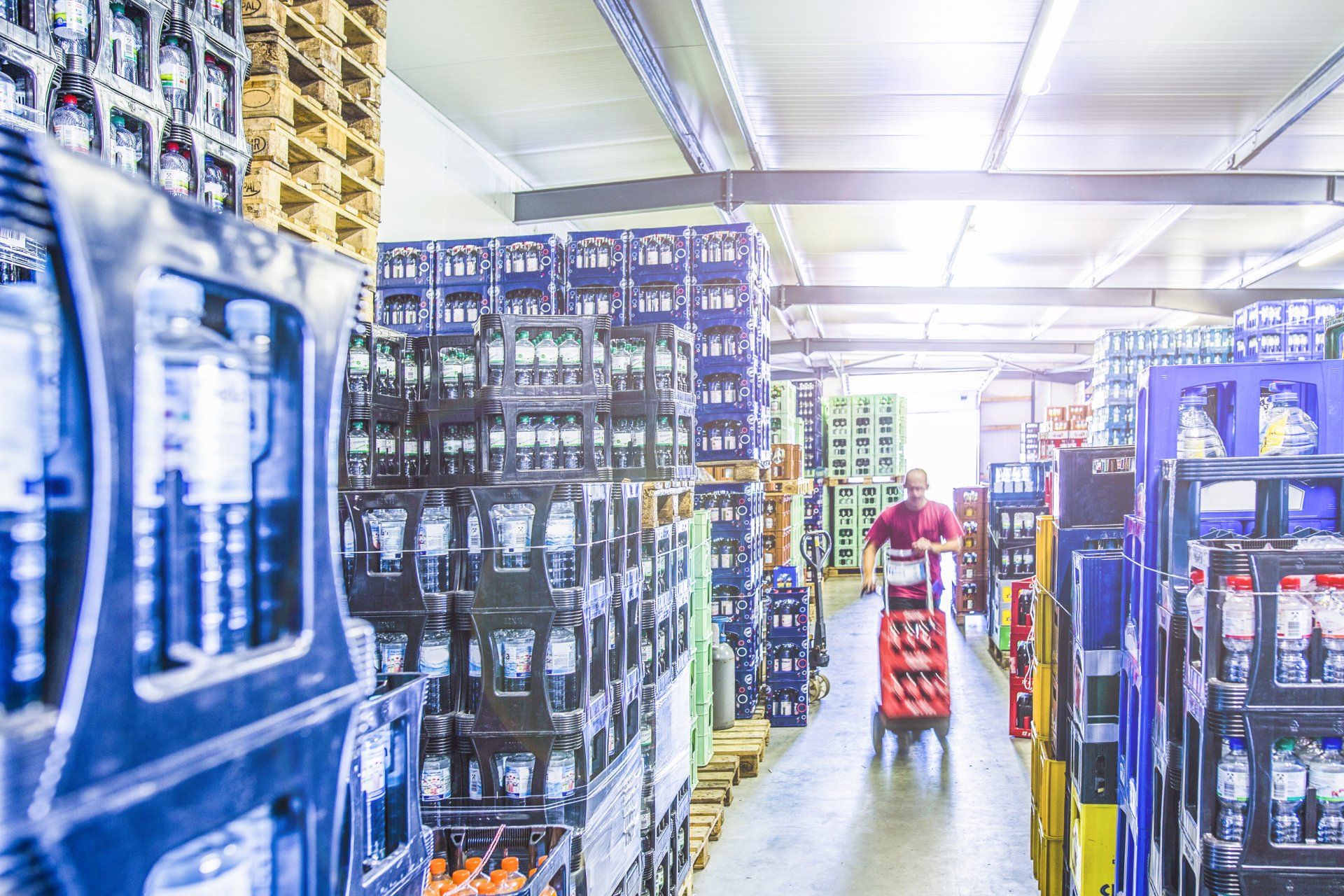 Wir stapeln und sortieren die Getränkekisten nach Ihren Wünschen.